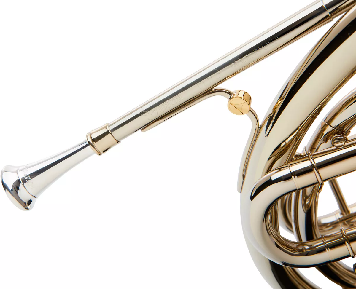 The Holton H179 is a high-quality French horn that is popular among professional musicians and music educators. It is known for producing a well-balanced, centered tone and being easy to play, even on challenging passages. The solid nickel silver version of the H179 is particularly noted for its good projection and rich, dark sound, which is especially well-suited for players who prefer a “big horn” sound. The tapered tubing and throat of the bell are larger than those on some other models, which contributes to the horn’s full, velvety tone and adds a hint of ringing overtones. The hard nickel silver material used in the construction of the horn is known for its quick response and bright sound when played up close.